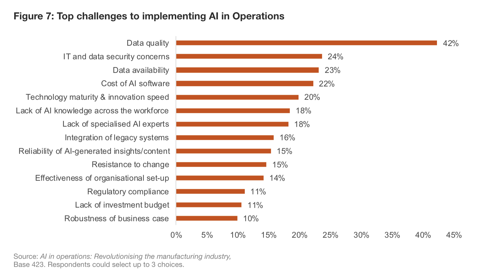 In the pwc and Microsoft AI in Operations study, IT and Data Security was the second highest on the list of challenges.