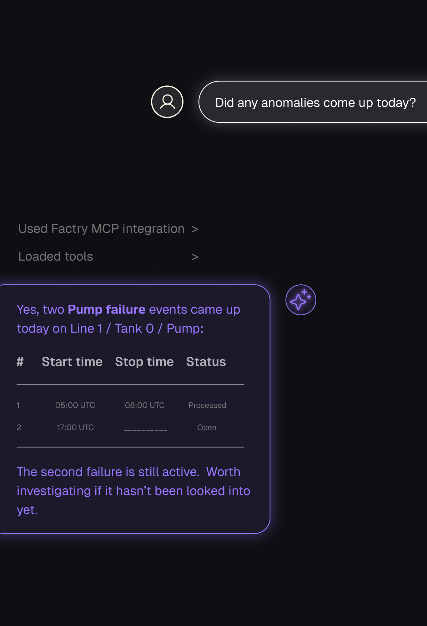 Factry’s built in MCP server connects your data to AI tools your team already uses. This allows anyone on your team to ask questions in plain language and get answers right away.